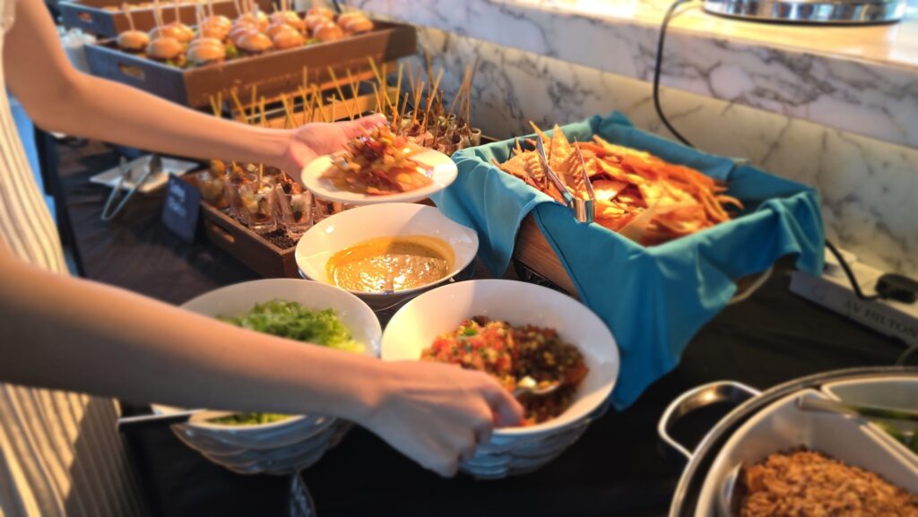 Food offerings include mostly à la carte selections ranging from Asian to Western cuisines, as well as a buffet lunch option.
