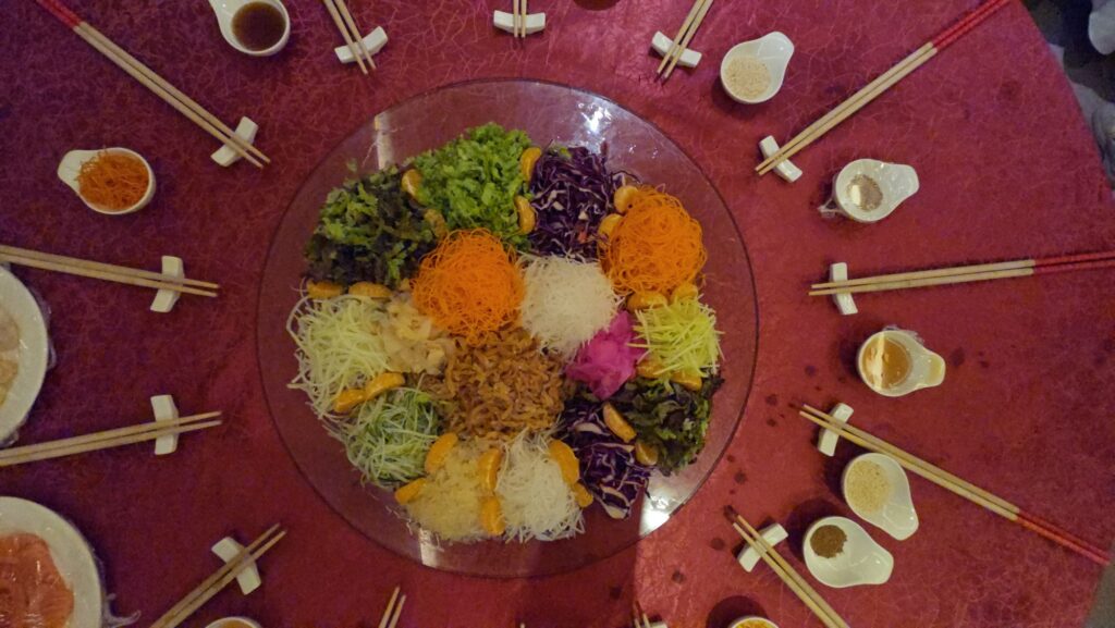 The yee sang is available for dine-in and takeaway, with pre-orders required one day in advance.